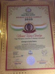 Today, Neena runs the NEENA YOGA & MEDITATION CENTER at Utthan Nagar, Gorewada, Nagpur, where students regularly attend and benefit from her teachings. On 23rd July, she was honored with the Maharashtra Ratna Award in Pune, and later received the prestigious Bharat Gaurav Samman in Delhi.